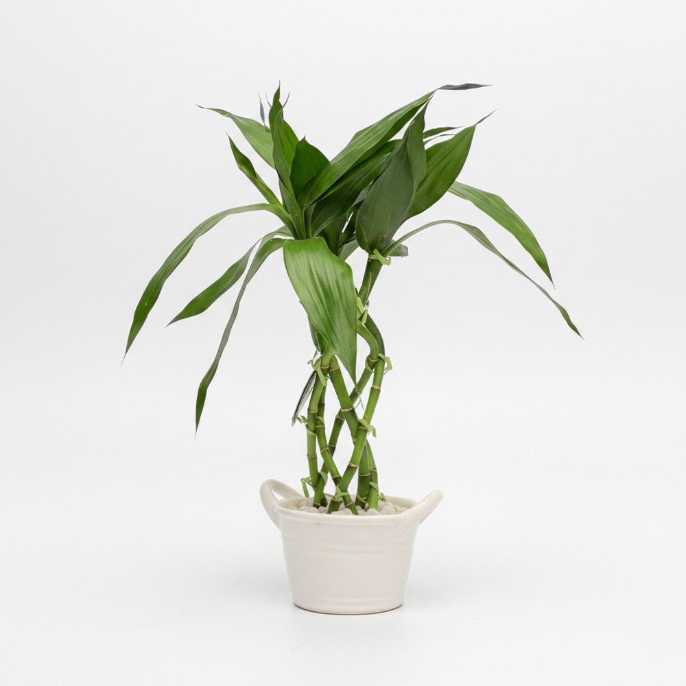 Bambu da Sorte 6 Hastes Trançado + Vaso Cerâmico Com Alças (Lucky Bamboo)