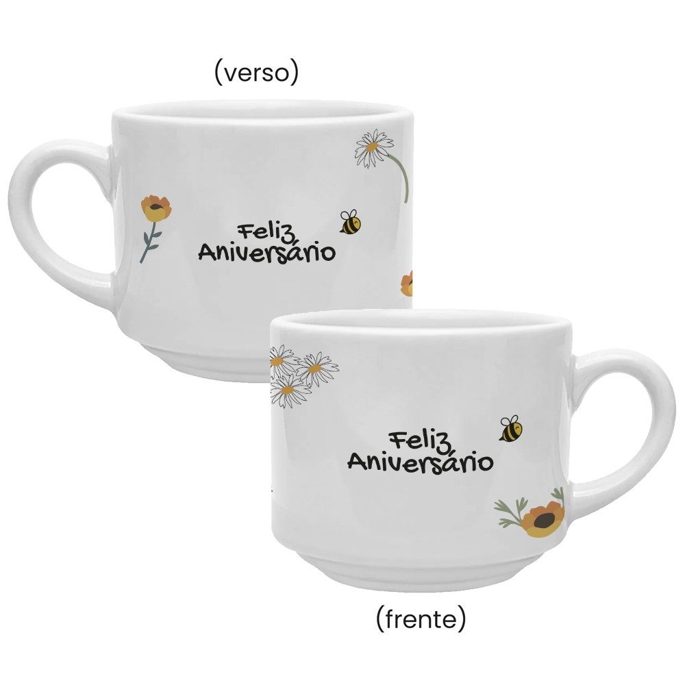 Caneca Cerâmica 180ml Branca • Feliz Aniversário quantidade