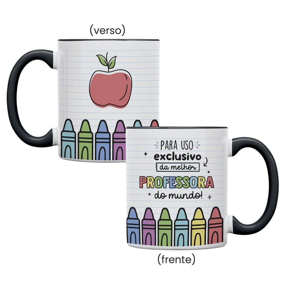/ Caneca Cerâmica 325ml Reta Alça Preta • Para uso exclusivo da melhor professora do mundo