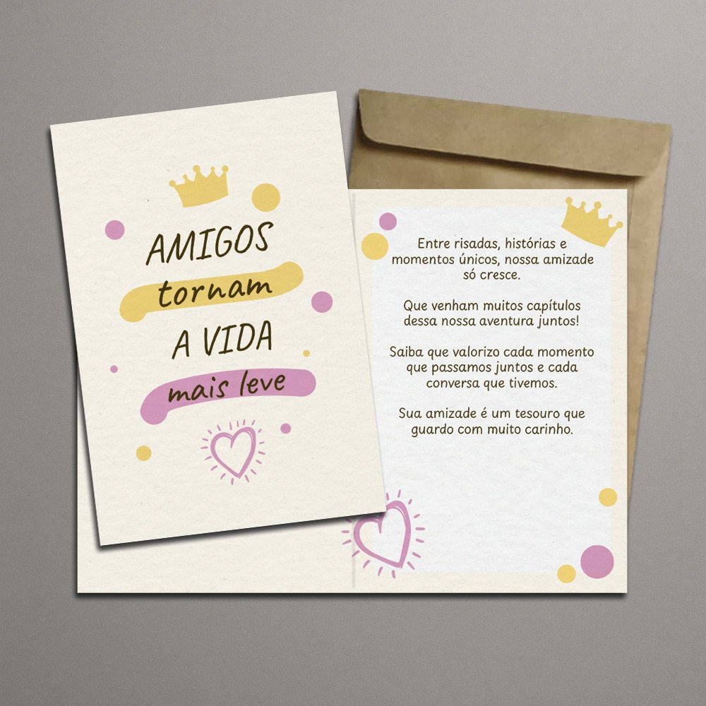 Cartão Dobrável 11x15cm Com Envelope • Amigos tornam a vida mais leve quantidade