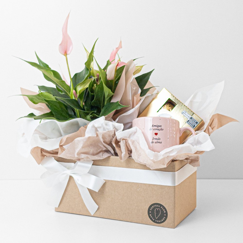 / Cesta Antúrio P09 Rosa + Ferrero Rocher + Caneca Amigas de coração e irmãs de alma