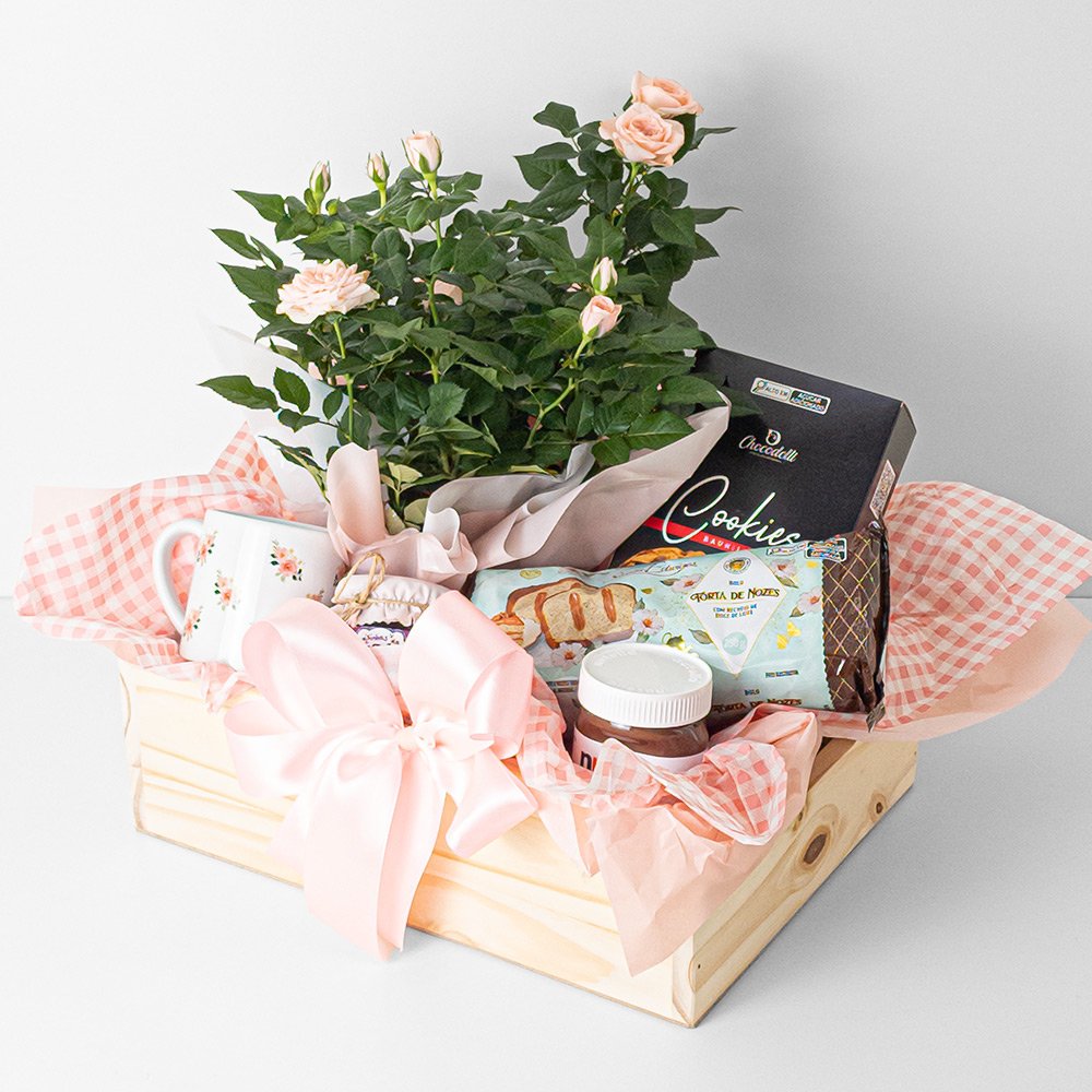 Cesta Mini Rosa P15 + Cookies 120g + Nutella 140g - Dia da Mulher 2026 quantidade