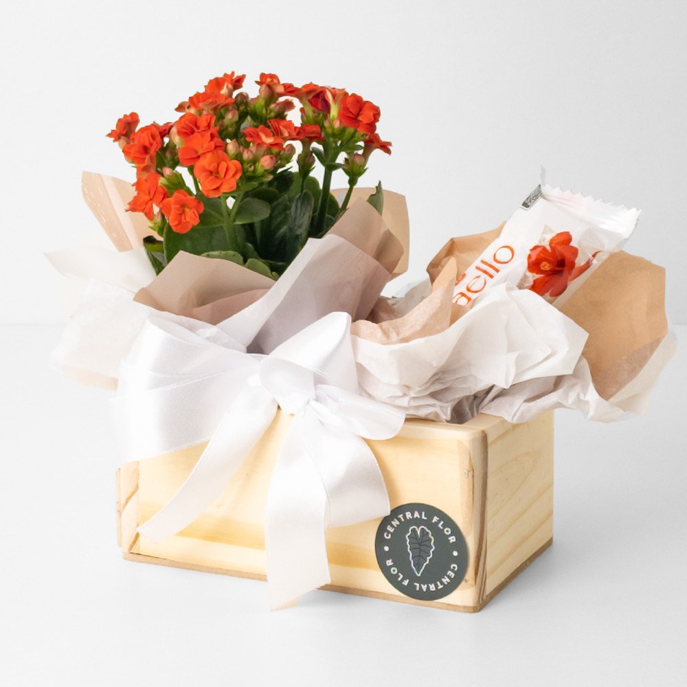 Cesta Muda Kalanchoe P06 Vermelho + Bombom Ferrero Raffaello 30g