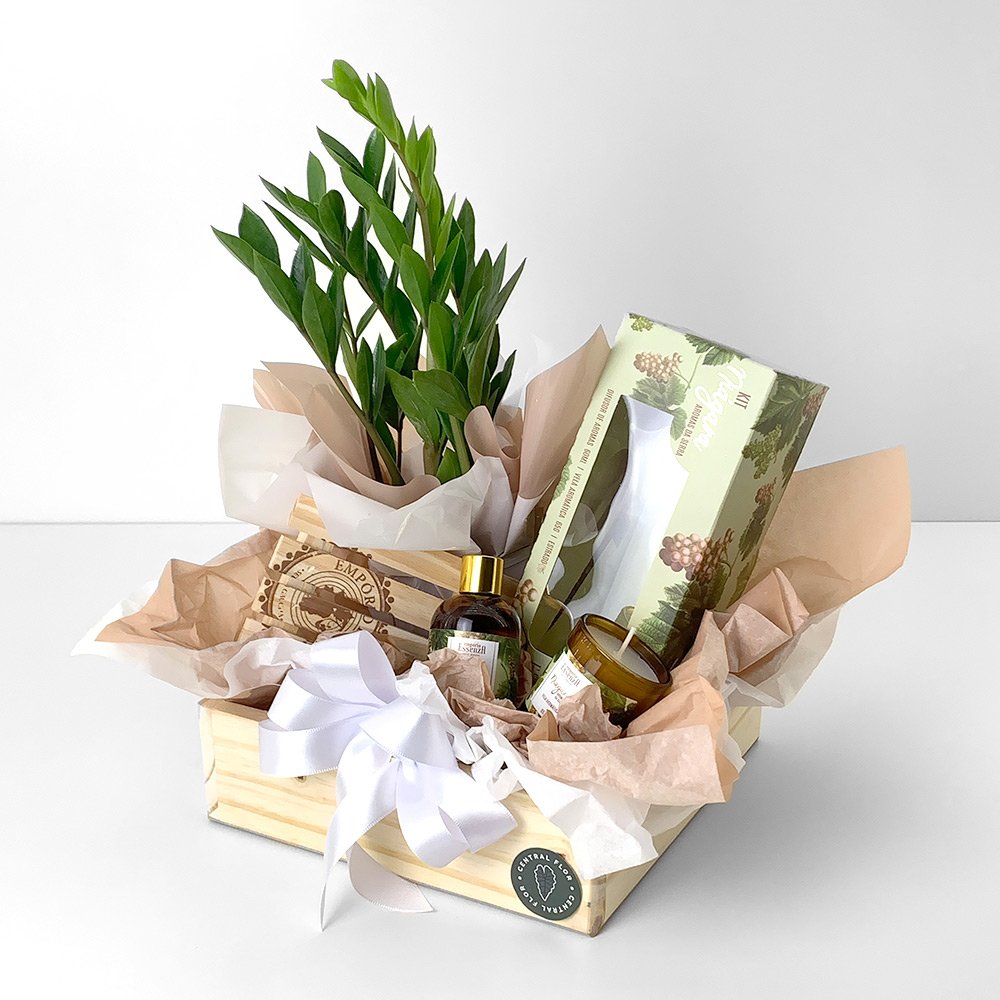 Cesta Muda Zamioculca P09 35cm + Mini Kit Vela Empório Essenza Aromas da Serra – Niágara
