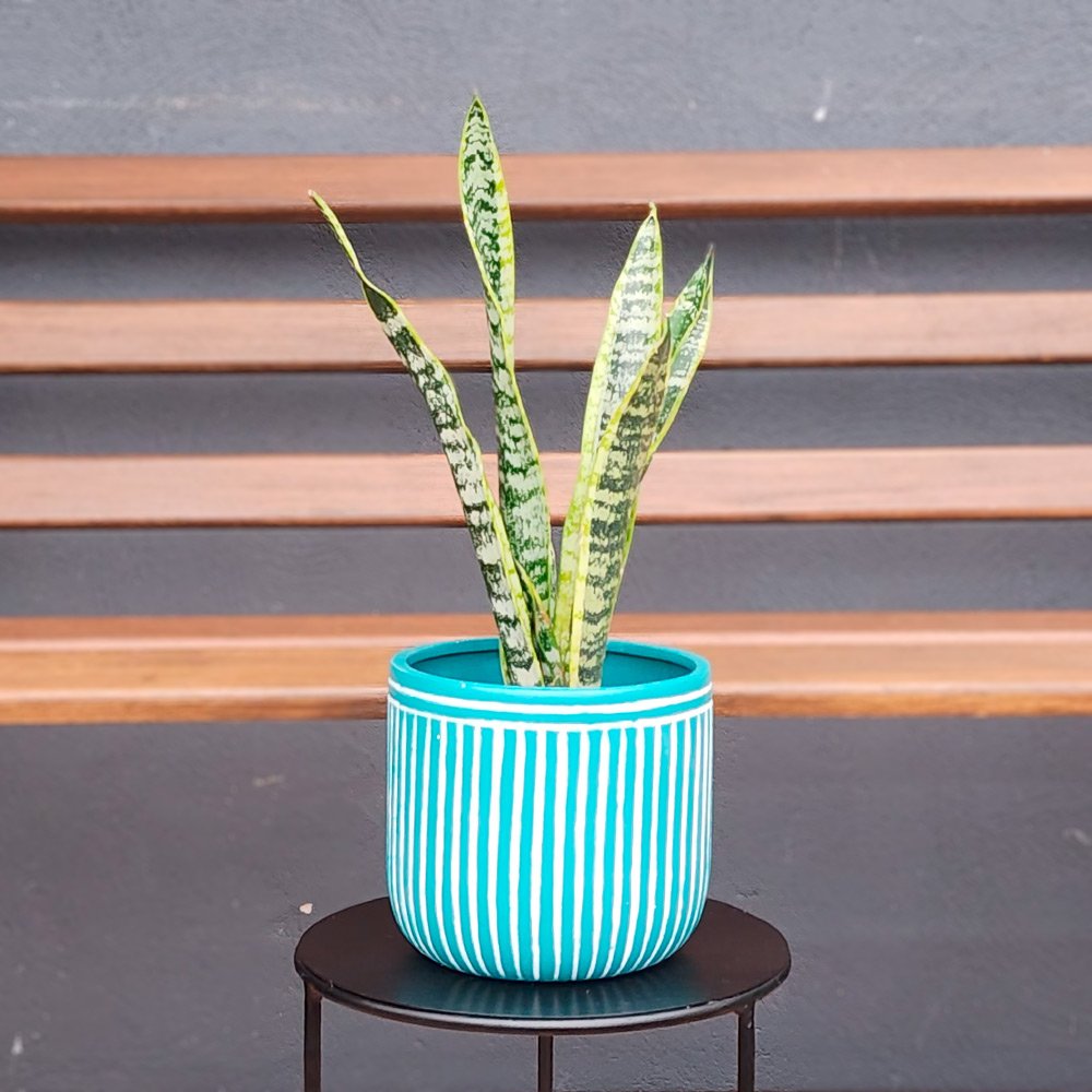 / Composição Sanseveria P15 + Cachepot Listrado Azul