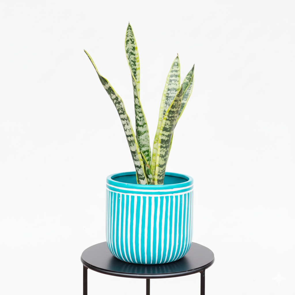 Composição Sanseveria P15 + Cachepot Listrado Azul