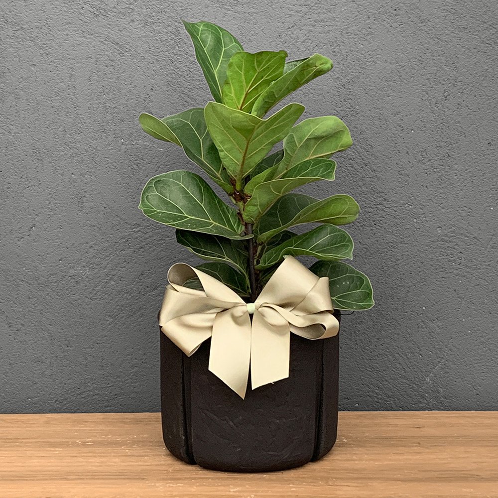 / Ficus Lyrata P15 + Cachepô Karaja 16 Preto Vasap + Laço