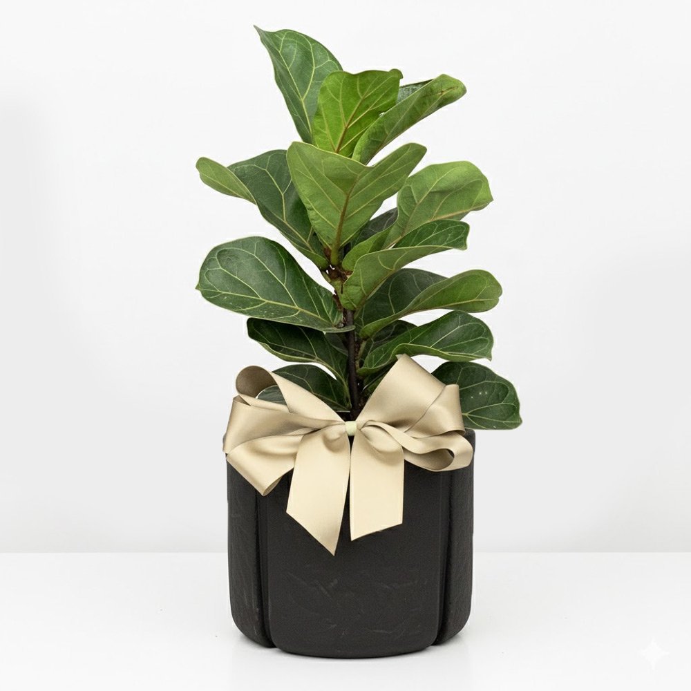 / Composição Ficus Lyrata P15 + Cachepô Karaja 16 Preto Vasap + Laço