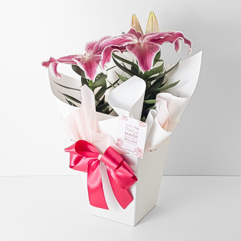 / Lírio P16 Rosa + Cachepô de Papel – Dia da Mulher 2026