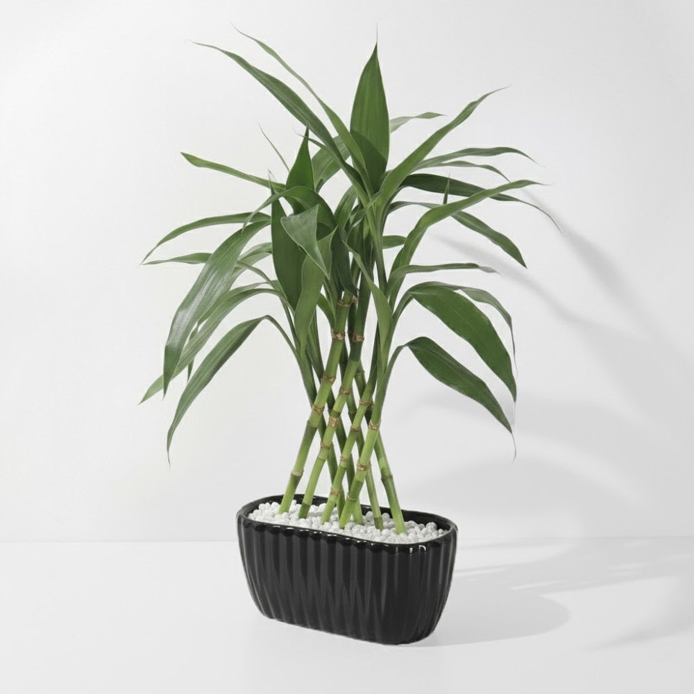 / Bambu Da Sorte 8 Hastes (Lucky Bamboo) + Cachepô Cerâmico Preto