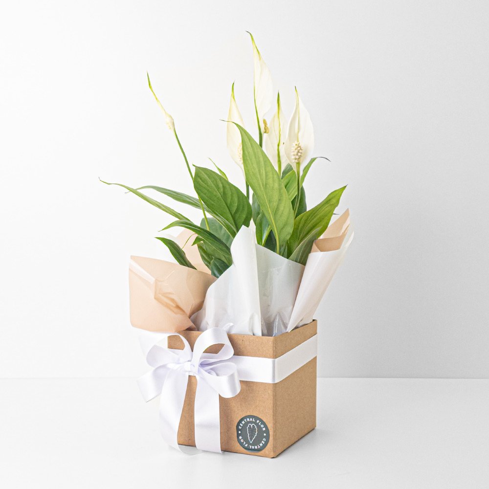 Lírio Da Paz P11 + Cachepô de Papel + Laço